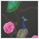 Pássaros pavões percorrendo galhos e flores cor-de-rosa, esse padrão é desenhado manualmente no Photoshop.
