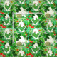 Uma mancha verde de tomate com galinhas e caracóis