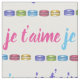 Tecido único apresenta uma ilustração original de uma linha de biscoitos macarônicos franceses, com JE T'AIME (Eu te amo) em uma fonte bonito. Este design de macarrão também está disponível em outros produtos. Não vê o que está procurando? Precisa de ajuda para a personalização? Entre em contato com Rebecca para ter algo projetado só para você.