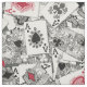 Jogando cartas dispersas... Originalmente desenhado a tinta. Arquivo de padrão de repetição de meia gota para tecido, sinta-se à vontade para ajustar a escala conforme necessário.