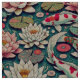 As cores vibrantes e os movimentos fluidos do koi fornecem um contraste dinâmico para as flores e pastilhas pacíficas dos lírios, tecendo juntos uma tapeçaria de vida, beleza e harmonia.
