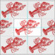 Tecido Lagosta Vermelha Vintage #1 Desenho