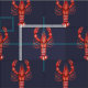 Os lagostins de Cajun da aguarela de Louisiana modelaram o tecido com azuis marinhos escuros um fundo colorido.