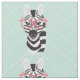 Tecido que apresenta um padrão de zebras (mostrando seus rostos e pescoços) vestindo um par de óculos de sol rosados com flamingos e diante de um padrão verde de sua índole.