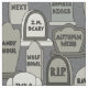 Obtenha pronto para algum divertimento assustador com as lápides do Dia das Bruxas neste tecido. As lápides têm nomes como "I.M. Assustador", "outono Webb", dos "Ghoul doces", do "uivo lobo", Jack O. Lanterna", e mais, nas máscaras das cinzas. © original Anne Coffey da arte.