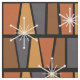 Arte geométrica moderna de meio século com formas retangulares únicas e starbursts sputnik.
