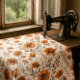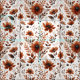 Tecido Laranja Botânica queimada no Floral Branco