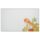Imagem musical fantástica de duas guitarras cor de laranja cruzadas sobre um fundo abstrato floral. Perfeito para amantes de música, e guitarristas de todas as idades.
