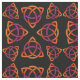 Padrão Celta Triquetra em Laranjas e Roxo em fundo preto. Projetado por Cheeky Witch® Visite a Loja de Tecidos de Bruxas Baratas para ver muitos tecidos divertidos para bruxas, wiccans e pagans astutos. Perfeito para roupas de varanda, vestidos, bolsas de corridas e tartes, almofadas e travesseiros, capas de rosto, máscaras e muitas mais criações mágicas. Não só para o Halloween!