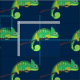 Um bom padrão de camaleão com o lagarto verde num tecido azul marinho divertido. presente de amante de répteis excelente.