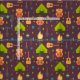 Tecido projetado com um padrão de acampamento fofo. Ataques temáticos como uma fogueira laranja, uma tenda verde, uma guitarra acústica e outros elementos da natureza como árvores, folhas, e também uma mochila, pá e cantina. Legal padrão externo.