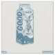 Uma ilustração de uma caixa de leite de cabra. Isto é desenhado no estilo dos posters de publicidade retrorados, antigos. O recipiente de leite tem uma imagem geométrica de uma cabra.