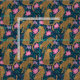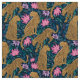 Leopardos cercados por uma luxuosa folhagem da selva e flores roxas e rosa vibrantes.