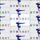 Gymnast Colorful Letters Tecido com uma garota fazendo uma pose de ginástica.