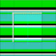 Este design apresenta um padrão de listras com cores como limão, turquesa, bege e e preto.