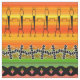 A vara figura a "linha dança" nas fileiras com outras formas em um fundo colorido do inclinação.