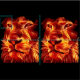 Lion Flame Fire no Tecido Negro com 2 Grandes Leões prontos para aquele projeto especial! Criado de um Impressão de Arte Digital original de Up On Mountain!