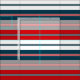 Design com temas náuticos com faixas azuis, vermelhas, cinzas e brancas