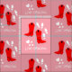 Botas de cowboy vermelhas, corações amorosos e impressões de pés de dança; ideal para qualquer um que ama a Line Dancing.