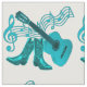 Este tecido tem uma luz - guitarra e luz azuis - botas de vaqueiro azuis. Há uns símbolos de música no fundo. Isto é mostrado no tecido branco, mas pode ser mudado a toda a cor usando o botão da personalização e o seletor da cor do fundo.