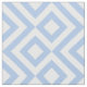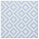 O tecido à moda caracteriza uma luz geométrica pairosa - teste padrão do meandro do azul e do branco. O design decorativo original tem os meandro brancos que dobram em torno dos diamantes azuis pálido que contêm os diamantes brancos. Os ziguezagues dos azuis bebés fornecem a separação subtil entre os trajetos do enrolamento.