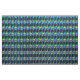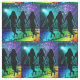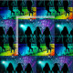 Este design de tecido tem uma silhueta de um grupo de dança de linha dançando em um andar de dança colorida do arco-íris que tem símbolos de música e há luzes de palco e uma bola de disco no fundo. Há outros designs como este com dançarinos/posições de dança diferentes.