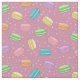 tecido bonito, cor-de-rosa, com macarões e bolinhas franceses em amarelo, rosa, laranja, azul e verde