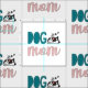 Adorável tecido moderno, com um adorável cão pintado com o termo "Mãe de cão" em fontes cor-de-rosa e cor-de-rosa
