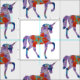 Roxo, vermelho, azul claro, bela arte de mandala unicórnio.
