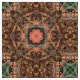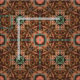 Um teste padrão influenciado oriental do design da janela de vitral que caracteriza a mandala ornamentado da estrela e formas transversais góticos simétricas no marrom, cerceta, luz - amarele, e cores do pêssego. Meu próprio original criou digital o design gráfico e o teste padrão.