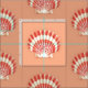 Digital aumentada, ilustração de um escudo de scallop - tecido alaranjado e branco coral do vintage dos meios mistos com um fundo alaranjado coral pastel
