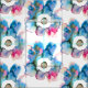 Impressão floral de fluido solto no estilo desenhado pela mão de aquarela moderna. Impressão de flor moderna, cor azul e rosa, em negrito e colorida, sobre fundo branco. Na tendência do design floral moderno.