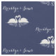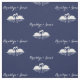 Tecido de casamento azul-marinho personalizado (algodão penteado) com cisnes brancas e texto personalizável - você pode adicionar o nome da noiva e do noivo