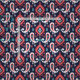 Tecido Marinho Turquoise e Coral Ikat Paisley