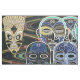 Esta pintura mostra uma seleção curada de máscaras africanas tradicionais que são lindamente interpretadas em detalhes complexos e cores vibrantes com fundo escuro.A diversidade de culturas africanas é refletida no conjunto de máscaras, cada uma com seu estilo e simbolismo profundamente encantadores.