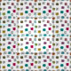 Este tecido tem um design moderno do século médio de labirintos dispersos, alguns com bolhas coloridas sob eles.