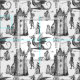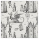 castle, dragon ,knight, medieval, gothic, historical, fantasy, toile,toile de jouy,vintage, antique, halloween, skeleton, medevil,medeval,macabre,ominous,sinister, illustration, black and white, architecture