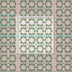 tecido de algodão com padrão de design de meio século. Fundo cor-de-rosa com um impressão de padrão geométrico em verde-sábado e azul-mate.