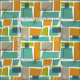 Tecido Meio século de Retângulos Verdes Laranja Turquesa