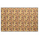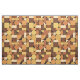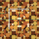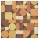 Este retrato da década de 1950 chamado padrão de arte abstrato tem quadrados, círculos e meio círculos em tons de laranja, amarelo e marrom.