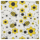 Tecido Mel Bumble Bee Bumblebee White Floral
