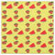 Tecido Melancia, morangos e pêssegos em amarelo