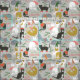Vetor Holiday, design por Shelby Allison, com diferentes gatos coloridos e padronizados a brincar com decorações de Natal.