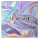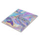 Um design metálico fino, dourado e roxo iridescente, brilhante, com nome personalizado.