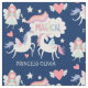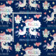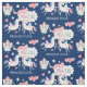 Este tecido personalizado bonito que caracteriza uma princesa feericamente com seus unicórnios é perfeito para o seu possui muito a princesa pequena! Em um fundo de azul escuro, dois unicórnios voados prance entre estrelas e corações cor-de-rosa, com uma nuvem branca acima deles que diga MÁGICO. Uma princesa feericamente voada pequena é vestida na luz - esverdeie e guardare sua varinha ao lado deles. Seu texto feito sob encomenda está no branco. As imagens e o texto são repetidos através da superfície do tecido.