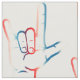 Adicione um toque do linguagem gestual a seu projeto sewing com este grande tecido que caracteriza diversas mãos brancas e azuis vermelhas do ASL eu te amo. Saias, camisas, travesseiros, edredões, e mais. De nossa coleção do tecido do linguagem gestual.