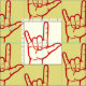 Adicione um toque do linguagem gestual a seu projeto sewing com este grande tecido que caracteriza diversas mãos brilhantes do ASL do vermelho eu te amo. Saias, camisas, travesseiros, edredões, e mais. De nossa coleção do tecido do linguagem gestual.