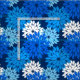 Tomada moderna de um tecido tradicional japonês de impressão quimono floral - flores estilizadas em cobalto e azul-cerulano, aqua, e branco sobre um marinho escuro / fundo azul-indigo