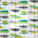 O tecido moderno das meias luas do meio século em uma era espacial inspirou o design.