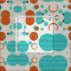 Bolas de lã em cor de laranja vibrante e tons azuis. Uma representação divertida moderna do século médio da textura e cor.